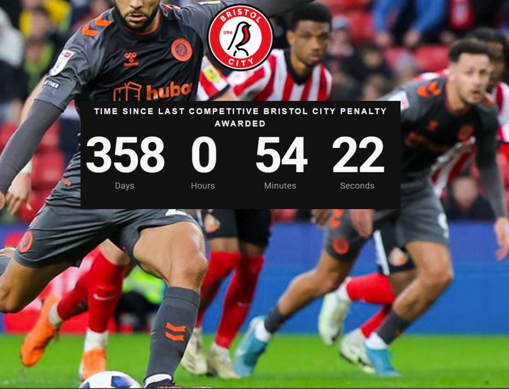 The last away penalty – I can’t remember – was it against Sunderland maybe? Nakhi Wells? That came after a gap so long that the New York Times and the Guardian wrote about it wrote about it. Anyway it’s been three years. I think that makes us an outlier.